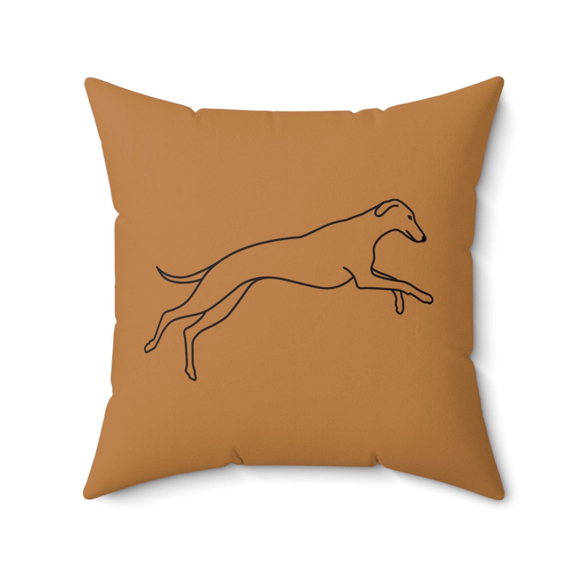 Bring warmth and comfort into your home with this charming pillow featuring a graceful, galloping sighthound. Its neutral, light brown color and adorable artwork create a serene atmosphere and add a touch of personality to any living space. It is a delightful gift for dog lovers.