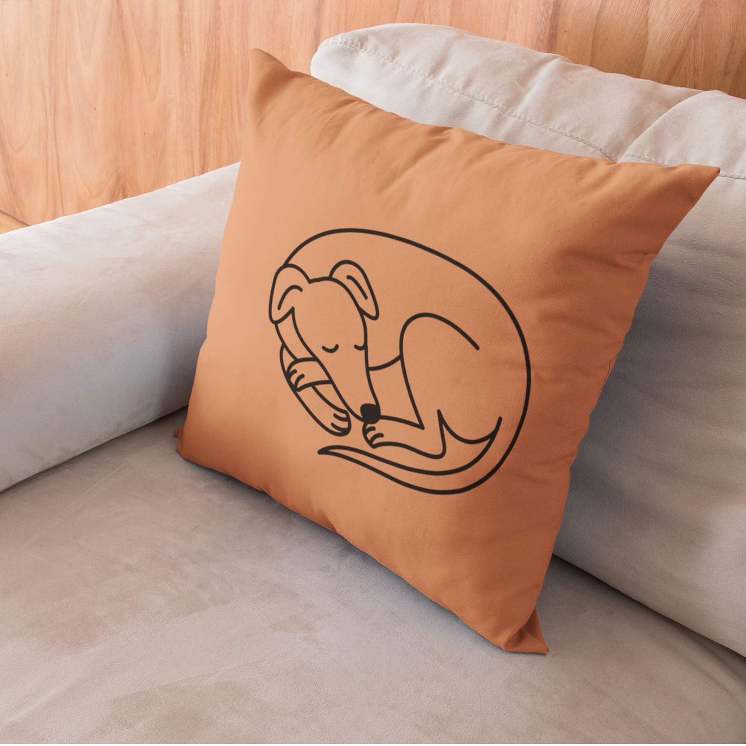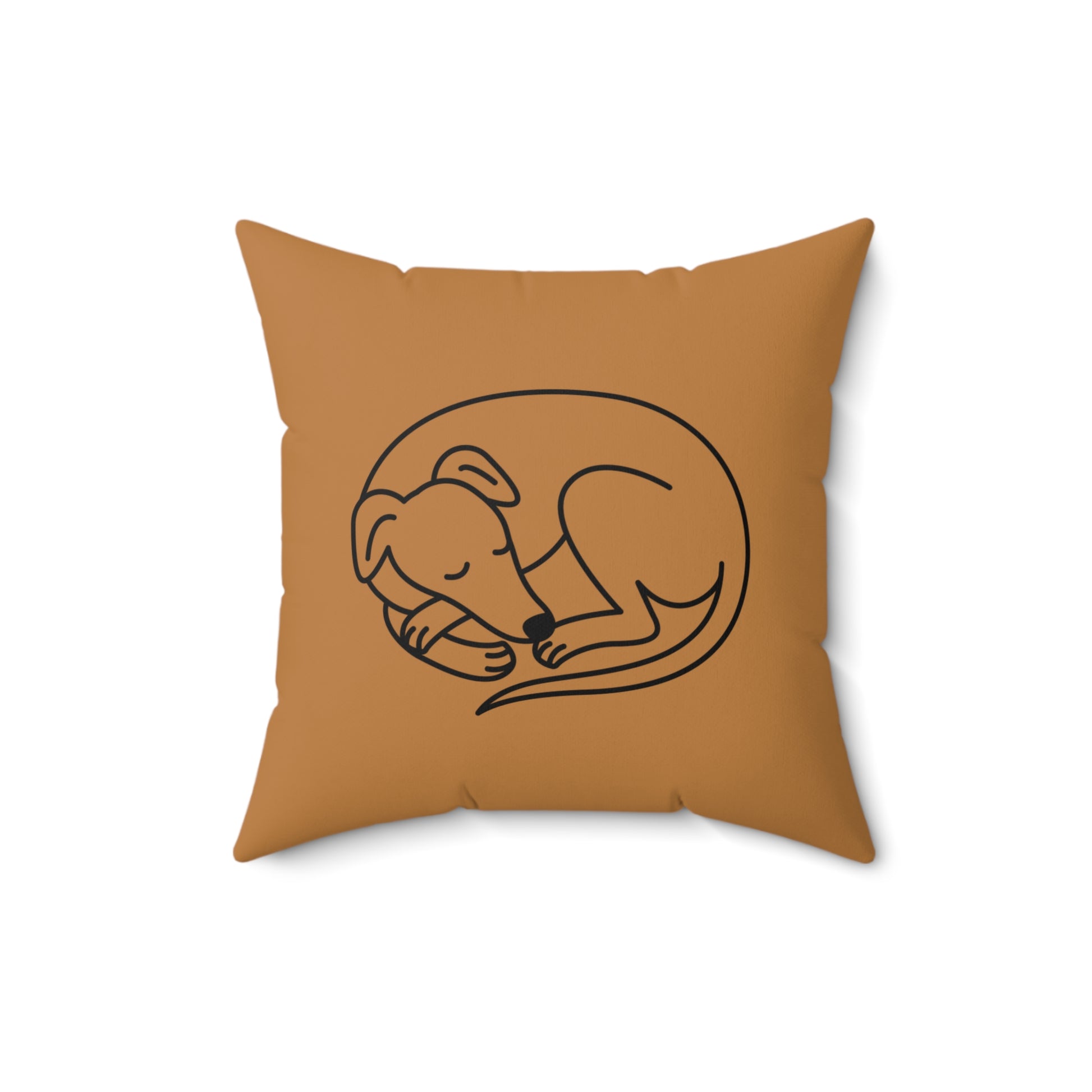 Bring warmth and comfort into your home with this charming pillow featuring a peaceful, sleeping sighthound. Its neutral, light brown color and adorable artwork create a serene atmosphere and add a touch of personality to any living space. It is a delightful gift for dog lovers.