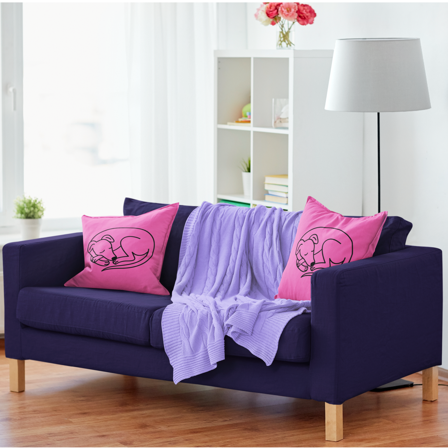 Bring warmth and comfort into your home with this charming pillow featuring a peaceful, sleeping sighthound. Its vibrant, pink color and adorable artwork create a fun atmosphere and add a touch of personality to any living space. It is a delightful gift for dog lovers.