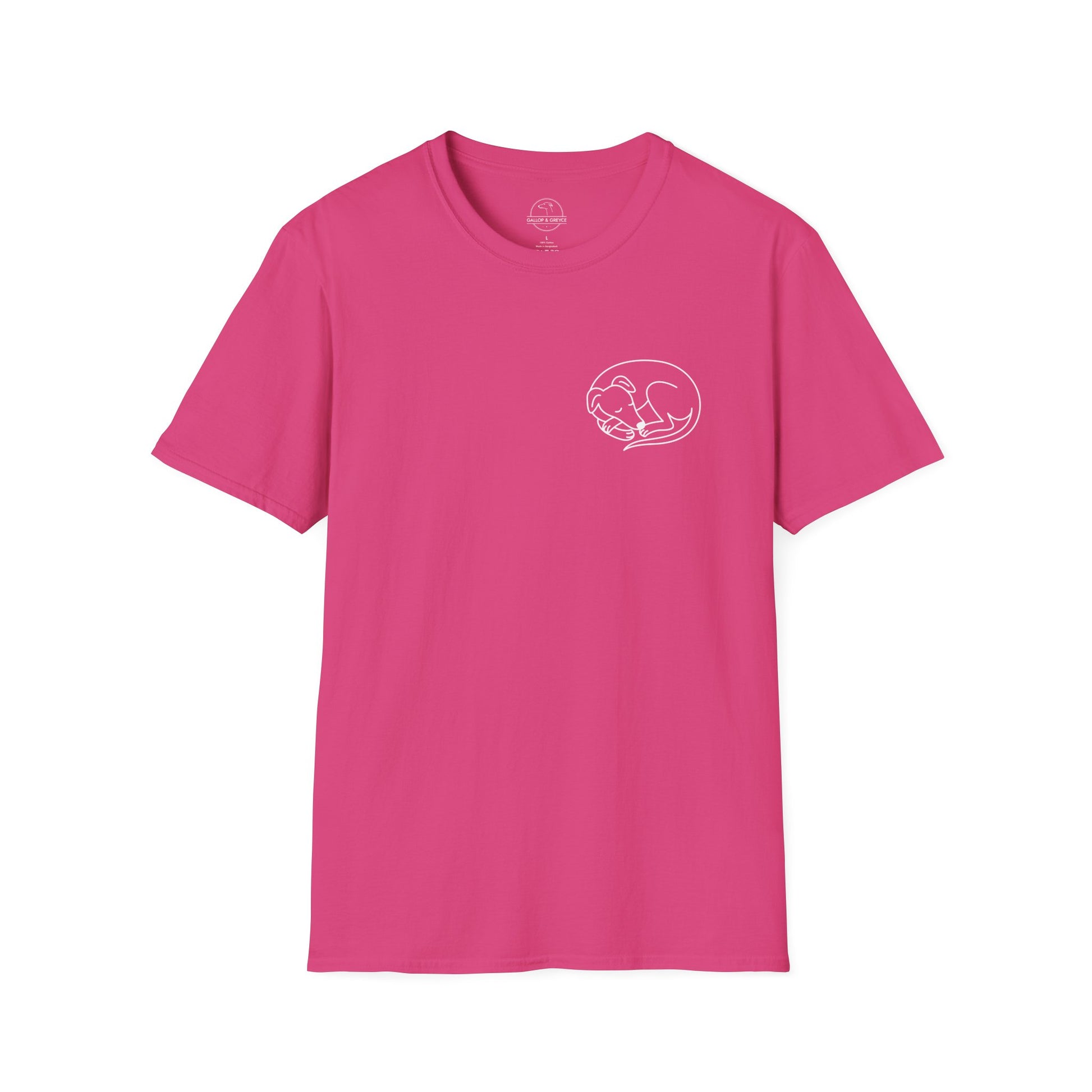 Celebrate the elegance, speed, and prodigious napping ability of our beloved sighthounds with this stylish graphic tee. Featuring a sleeping sighthound on the upper left chest, this shirt blends timeless design with everyday comfort.